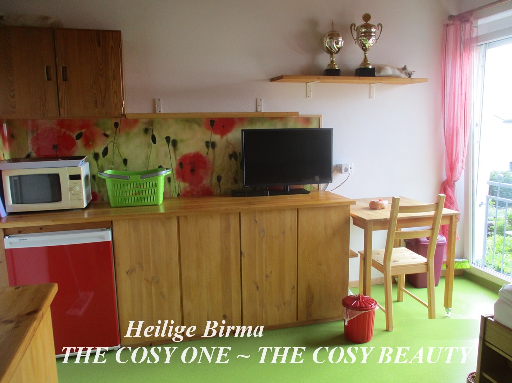 Eine Miniküche ist ebenfalls in diesem Zimmer um die schnelle Versorgung von Mama und Kitten zu gewährleisten